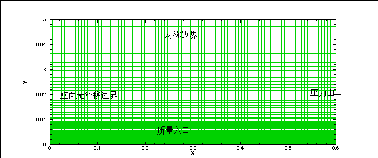 采用有限速率化学动力学计算层流C3H8/AIR燃烧的问题,化学反应机理默认为fluent自带的一步化学反应;计算域为0.6*0.05m,在计算过程中,一方面要模拟c3h8燃烧的火焰结构,另一方面也要计算主流速度分布,所以在竖直方向采用拉伸网格,最小尺度10μm左右。