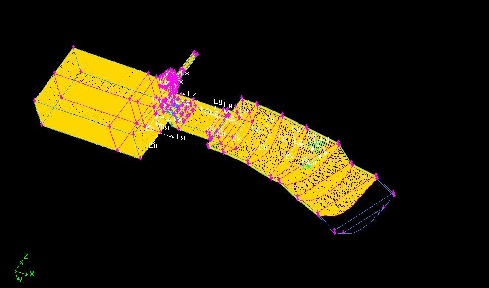 这是一个水电站首部枢纽的gambit模型,如图所示位于该模型右端的天然河道的最后一段无法划分网格。