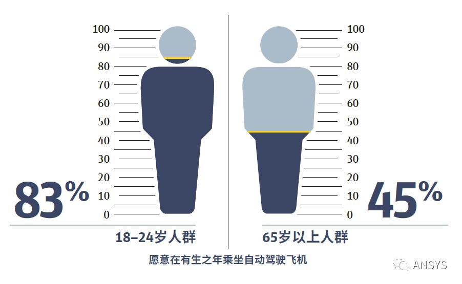 通过本次调研,ANSYS分析了消费者对未来自动驾驶飞机的观感,调查结果总结如下: