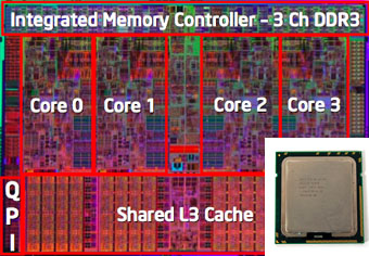 Intel的整合内存控制器(integrated memory controller),可以支持3通道的DDR3内存运行在1.33GT/s(DDR3-1333),这样总共的峰值带宽就可以达到32GB/s。三通道的DDR3内存,其每通道都能够独立操作,其处理器所集成的内存控制器需要乱序执行来降低延迟。