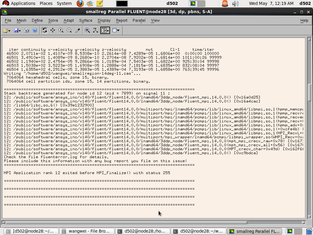 在曙光node上适用ansys fluent,计算进行到自动保存步数时无法自动保存,然后就不能进行任何操作了,跪求解决办法