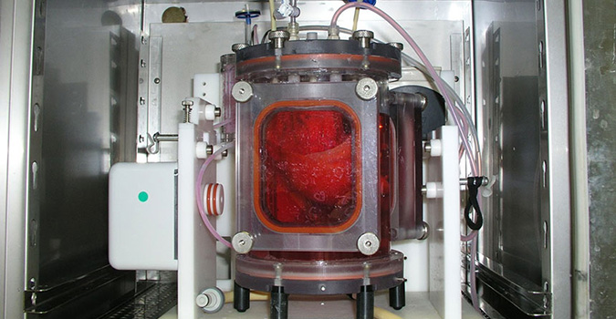 据ScienceNews报道,美国得克萨斯大学设在Galveston的医学分校最近成功将在实验室中培养的猪肺移植到了猪的体内,并且在没有使用抗排异药物的情况下没有发现排异反应。这将通过生物工程培养人体器官方面的研究提高到了一个新的水平。在美国,每年大约有1500人等待肺脏移植,他们通常需要等待几个月才能得到移植器官,而移植器官通常还需要应对机体对新器官的排异反应。如果这项研究取得成功,则病人可以大大减少等待时间,同时免除了排异反应带来的风险。 据研究人员介绍,这项研究首先需要建立一个猪肺的支架,然后用糖和清洁剂的混合液从猪的肺内剥离出活体肺细胞,然后将肺细胞和支架放入图1所示的生物反应箱中进行培养。在经过30天的培养后,肺细胞将附着在支架上长成猪肺的形状。此时将这个人工培养出来的肺移植到猪体内,以替代原来的猪肺。接下来移植到猪体内的猪肺中将逐渐发育出完整的血管网络,从而完成整个移植过程。 免疫学家Joan Nichols带领同事在4头猪身上完成了这项试验,并让这几头猪分别存活了10小时、2周、1个月和2个月,然后通过解剖这几头猪观察人工肺在移植后的状态。结果表明,移植到这几头猪体内的肺脏完美地存活下来,并且没有发生排异反应。有的猪肺内还出现了普通猪肺内经常出现的细菌——这是移植成功的另一个积极信号。 目前这项移植试验还存在一个小的缺憾,即这些被移植到猪体内的肺脏仅仅被连接到猪的循环系统中,由循环系统供给这些猪肺营养以保持存活,但这些被移植的猪肺还没有被接入肺动脉,还不具备将空气中的氧气提取出来供机体使用的功能。下一步的试验将把猪肺与肺动脉连接,从而完成整个试验。 |